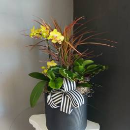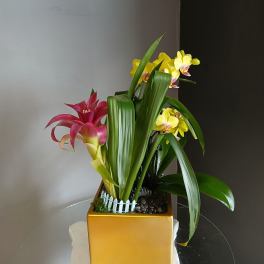 Price: $69.99 Mini Phalaenopsis Orchid + Guzmania Bromeliad (gold square) Product Tags: Next-day Delivery