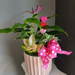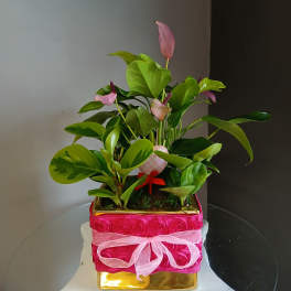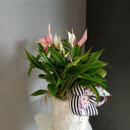 Price: $64.99 Pink bromeliad (guzmania) + fern (blue pedestal ceramic pot) Product Tags: Next-day Delivery